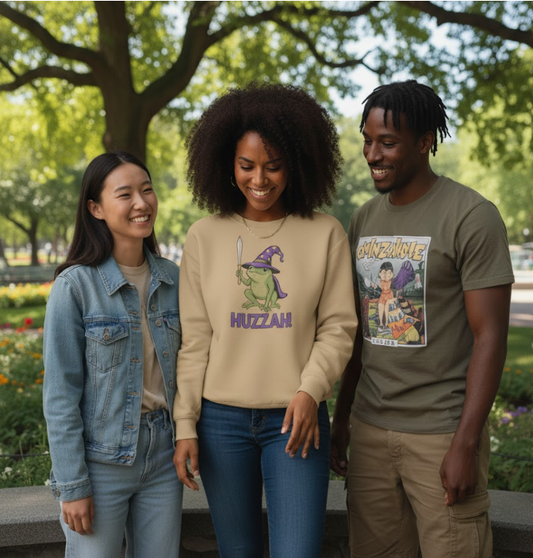 Huzzah Frog Wizard Sweatshirt - Cute Wizard Frog with Sword - Heavy Blend Crewneck